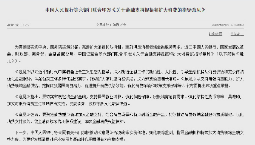 Kuai Technology在6月24日报道说,今天下午,中国受欢迎的银行和其他六个部门共同发布了“有关提高和扩大消费的财政支持指南”。...
